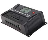 The 20A charge controller has an LCD screen. The display shows your current battery voltage. You will know what voltage is your battery at any time. It also has a couple of 5V, USB ports that can deliver up to 2A across the two ports. It also has a battery voltage of 12-24V.